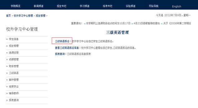点击图2红框标注的“三级英语”链接,显示如图3的界面,点击“三级英语报名”,进入三级英语的报名功能。