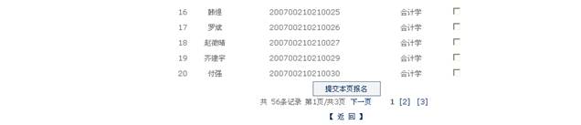 搜索到学生后(如图5所示),按【全部选择】按钮,则当前页面的所有学生均被选择;按【全部不选】按钮,则当前页面的所有学生均不被选择。点击【下一页】链接,显示下一页搜索内容。点击第1,2,3页链接,显示第1,2,3页搜索内容。