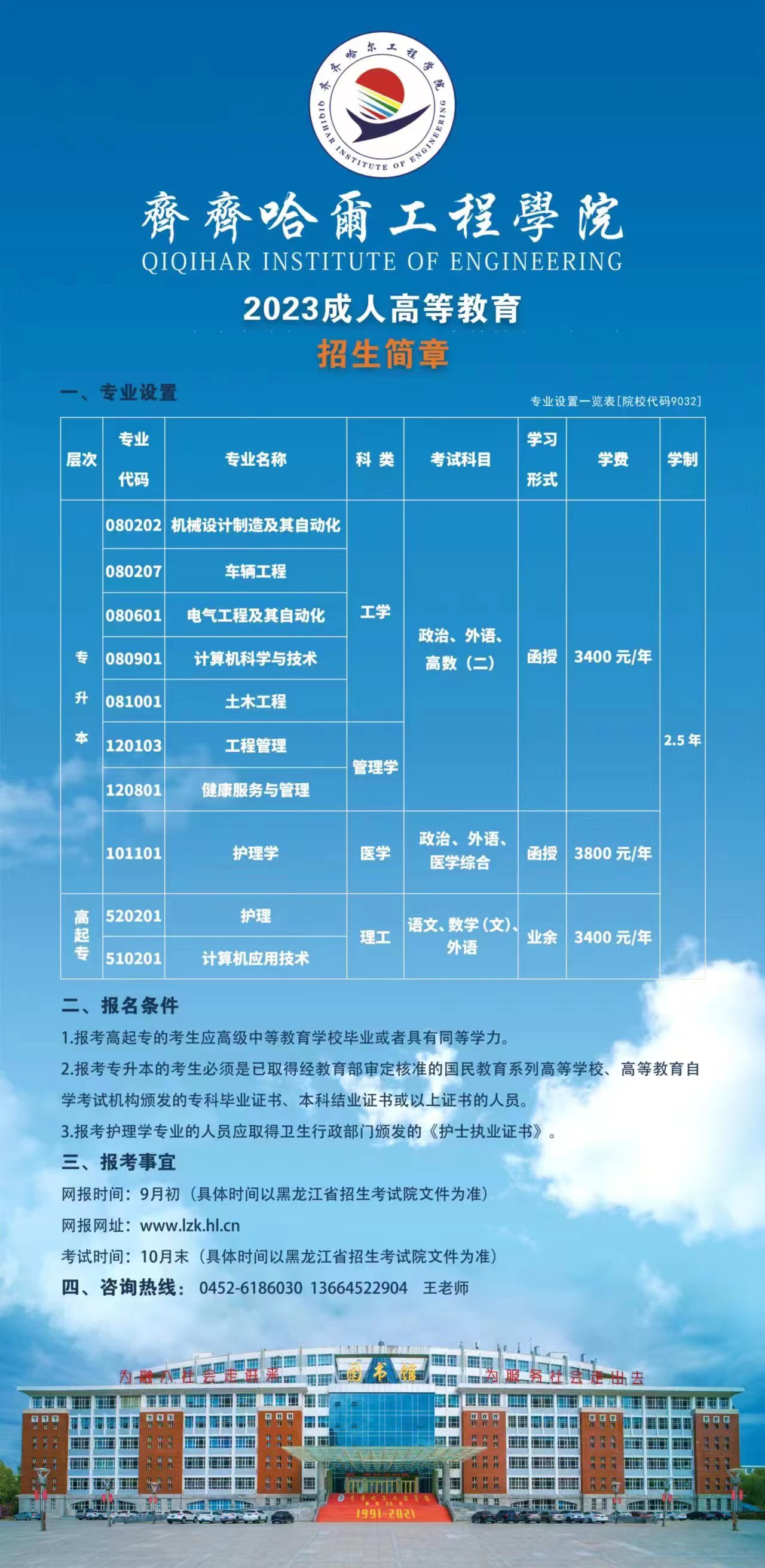 2023年齐齐哈尔工程学院成人高等教育招生简章