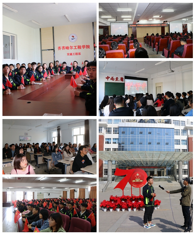 学院基层党组织提前对师生收看大会盛况做出安排,管理工程系在阶梯教室、机电工程系在608会议室、交通工程系在一号教学区会议室、建筑工程系和健康与护理系组织节日留校学生在图书馆501报告厅收看中华人民共和国成立70周年庆典实况,共享精彩视觉盛宴和心灵震憾。